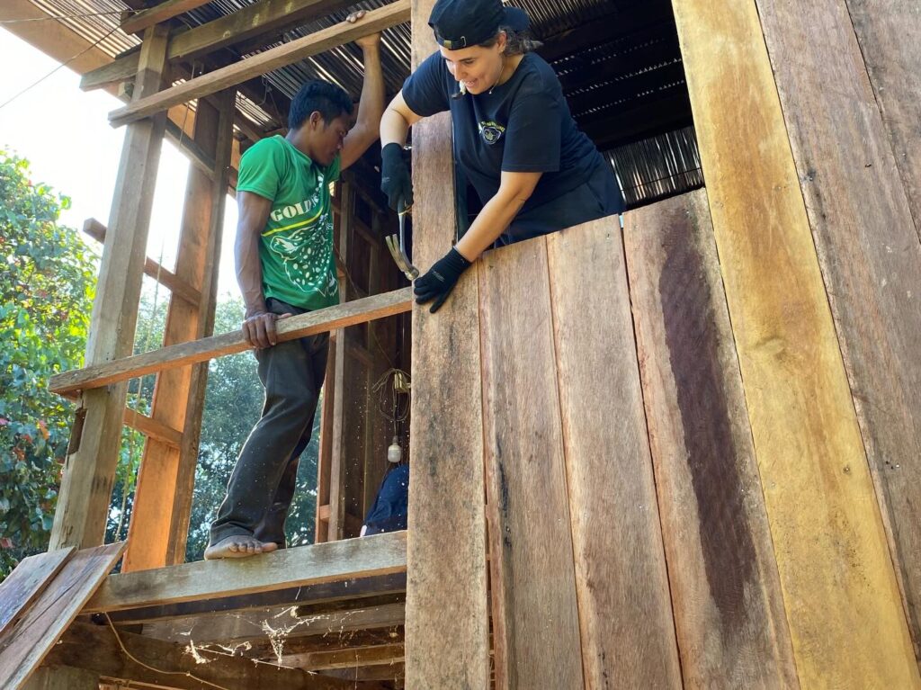 In Siem Reap, Mindol Metta Karuna Reflection Centre has a house building project for which we spent the year raising $10,000 with the help of our wider mercy communities. With our $10,000, the Metta Karuna team, led by Reth, bought the materials needed to repair a house belonging to a woman called Sakia. The aim was to help her and her sisters feel safe and secure. This is one of the most meaningful contributions we made when we came to Cambodia as the house building project assists Cambodians living with disabilities (often Landmine victims) who are experiencing poverty. As a further gesture of our love and respect for the Cambodian people, we assisted Reth and the team on the building site by holding, carrying and nailing wood. This year, we committed to a day and a half of hard work to try to get Sakia’s house finished (we came very close with only a few floorboards to be completed by Reth’s team). She even got the hammer out herself, as did her brother who helped many of us fix any mistakes and improve our technique. It was an honour to meet her and her family, and we were so happy to share a meal with her in her home on our first day. She and her family are a testament to the spirit, hope and strength of the Cambodian people and we wish them safety and peace in the future.
